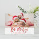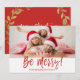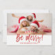 Seja Feliz Cartão com fotos De Manuscrito Com Letra De Natal. A foto e o texto deste script de pincel com letra manual podem ser atualizados e personalizados com sua foto e seu nome de família. Este cartão apresenta também o nome da família e uma coroa de folha de ouro no verso do cartão de Natal.