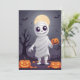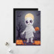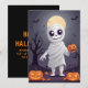 Termine o Halloween com diversão com nosso cartão-presente "Travessuras de Múmia"! Este design assustador, mas divertido, apresenta uma múmia de desenho animado envolta em bandagens rasgadas, com um sorriso amigável e travesso espiando por trás. Contra um cenário de um cemitério escuro e enevoado com uma lua cheia lançando um brilho sinistro, este cartão captura o espírito festivo do Halloween.