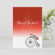 Este design apresenta uma bicicleta vintage penny farthing e um cartão de Natal de árvore de Natal brilhante.