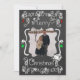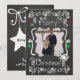 Um quadro de discussão tem um plano de fundo com lindos pergaminhos, estrelas e ornamentos de texto branco, vermelho e verde, e branco que diz "Feliz Natal" na frente e "Que todos os seus dias sejam felizes e brilhantes" na parte de trás. Este belo Cartões de foto de Natal de feriado personalizado tem vários ornamentos de estrelas, e um pássaro em um design de ninho e áreas que você pode adicionar facilmente seus nomes, o ano atual e a foto!