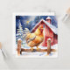 Cartão de Natal personalizado, bonito, com uma galinha em forma de aquarela, parada por uma cerca de madeira rústica em frente a um celeiro. Engraçado mensagem de feriado no verso que pode ser editada na área personalizada.