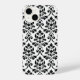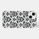 Design de padrão de superfície do damasco decorativo em detalhes em preto sobre um fundo branco.