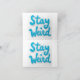 Um cartão de saudação de 4" x 5,6" com "STAY WEIRD" em texto azul divertido, perfeito para enviar uma mensagem peculiar aos amigos.