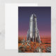 Ilustração retrô futurística de ficção científica de viagem e transporte, imagem de foguete. Astronautas correndo para sua nave espacial escapando de alienígenas em forma de besouro em um planeta estrangeiro tentando voltar à Terra. Um clássico design de ficção científica retrô dos anos 50 do futuro.