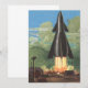 Ilustração vintage futurista do espaço sideral e planetas Imagem de ficção científica apresentando uma nave espacial decolando da terra. Um design clássico de ficção científica retrô dos anos 50 de viagem e transporte.