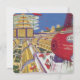 Imagem de viagem e ficção científica de transporte, com ilustração Vintage, apresentando um aeroporto futurista com um avião que voa de Nova Iorque nos Estados Unidos da América para Sidney, Austrália. Um clássico dos quadrinhos, um futuro retrô de ficção científica com pessoas em carros de avião.
