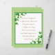 Belo artigo de rascunho com uma bênção irlandesa, shamrocks embelezando e um fundo dourado/verde texturizado : Que seus pensamentos sejam tão felizes quanto as vergonhas. Que seu coração seja tão leve quanto uma canção. Que todos os dias traga-te horas felizes brilhantes, que fique contigo o ano todo.