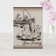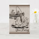 Esta é uma ilustração antiga de dois homens na vintage da década de 1930 que pescam em um lago ou rio numa canoa ou caiaque. Um dos homens prendeu um peixe grande, talvez um salmão. A ilustração é sépia amontoada como uma fotografia antiga, e é contra um fundo de efeito de burvolta envelhecido. Faz um cartão de aniversário de excelente para um pescador apaixonado. Dentro saudando diz "Parabéns".