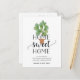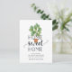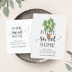 Cartões postais de anúncio encantadores e modernos que permitem aos amigos e à família saber sobre a sua nova casa doce! Design apresenta uma vibrante ilustração verde-aquática da figueira fig com "home doce home" em script preto suave e tipografia de blocos. Use os campos modelo para adicionar sua introdução personalizada, novo endereço e nomes. As informações se repetem no lado inverso com o espaço para endereçamento do destinatário.