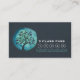 Elegante, Modelo de Cartão de Lealdade de Passagem de Yoga, Árvore de Água Teal e Preta, Instrutor de Meditação de Yoga Classe 5.