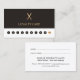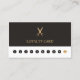 Cartão de fidelidade simples e moderno para o salão de beleza. Design elegante com cinza escura e fundo branco e uma tesoura dourada falsa. Ferramenta perfeita de marketing para recompensar seus melhores clientes.
