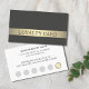 Elegante modelo de cartão de fidelidade totalmente personalizável para profissionais de beleza. Design com fundo de cinza escuro e fita falsa de ouro.
