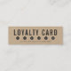 Na moda rústico mini kraft cartão de visita com as palavras "Cartão de fidelidade" em letras negrito e círculos em cinzas escuras. Uma forma excelente de recompensar seus clientes/membros leais. Este cartão de fidelidade kraft é perfeito para artesãos e fabricantes de bens feitos à mão, como artistas, tricistas, vestimentas, etc. É fácil personalizar; basta substituir o texto do marcador de posição para adicionar suas próprias informações. Para obter mais opções, como alterar a fonte, o tamanho/cor do texto ou o espaçamento entre letras, clique no botão "Personalizar". *Observe que a Marca d'água Zazzle que aparece na visualização de zoom NÃO aparecerá no produto impresso final © Rosewood e Citrus