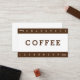 Café é uma bebida criada com sabor amargo preparado a partir das sementes torradas do cafeeiro. O feijão é encontrado em cerejas de café, que crescem em árvores cultivadas em mais de 70 países, principalmente na América Latina equatorial, Sudeste Asiático, Sul Asiático e África. O café verde (não torrado) é um dos produtos agrícolas mais comercializados no mundo. Excelente para uma cafeteria casual ou espresso drive-thru ou mesmo um café que sirva lattes e mochas e cappuccinos. Altere os números se quiser oferecer uma bebida grátis após menos (ou mais) visitas. Mantenha seus clientes voltando para mais bebidas de café especiais e de alta qualidade!