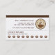 Café é o nome do jogo neste cartão de visita que usa cores e imagens de café. Um crachá que mostra uma xícara de café a vapor se destaca contra um círculo bege pontuado por estrelas. Os feixes castanhos se rompem atrás do crachá com as informações comerciais impressas abaixo em um painel negro, com marcas d'água do café. O reverso repete um crachá de café semelhante com impressão extra à esquerda. Personalize a seção de fidelidade para atender às suas necessidades. Disponível com produtos correspondentes.