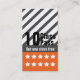 Cartão da passagem da classe do cartão de visita 10 do estúdio da ioga. Use este cartão para promover seus gym e classes da malhação. Suporte do cartão tem 10 placeholders da estrela que podem ser perfurados ou carimbado todas as vezes um membro atende a uma classe. Recompense seu cliente com classe livre ou entre-o em sua própria recompensa. Inteiramente customizável, entre em sua própria informações da empresa. Excelente para instrutores, instrutores da ioga, ou estúdios pessoais de Pilates.