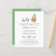Convite personalizável de chá de fraldas de abacate divertido, com um abacate bonito sobre um fundo branco limpo. Perfeito para um chá de fraldas temático fiesta. Este é um convite em papel de barato. Você é bem-vindo a visitar nossa loja Peony Design para comprar este convite em cartão ou digital.