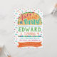 Taco sobre uma festa! Reúna a família e os amigos para celebrar o estilo mexicano de aniversário do seu filho com estes brilhantes e divertidos convites para festas. Um convite de festas com letra de mão com um taco e uma letra no estilo fiesta sobre um fundo confetti.