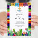 Convidado de Natal Fiesta Baptism com cacto e suculento para o menino. Invitaciação Fiesta Bautizo