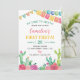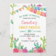 Nosso convite de aniversário de Fiesta Cactus First Fiesta é a forma perfeita de convidar amigos e familiares para o seu partido. O design apresenta um tema colorido, com espaço de sobra para todos os detalhes importantes, como data, hora e local da festa. Perfeito para qualquer idade, gênero e tema do partido, é certo que impressiona seus hóspedes e os entusiasma pela celebração.