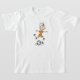 Uma figura jogador da vara da menina de futebol que veste um uniforme alaranjado funciona acima do campo com a bola de futebol neste t-shirt bonito dos esportes do futebol das meninas.