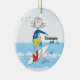 Nossos enfeites de natal personalizados & datado originais do surfista caracterizam a figura a mais bonito menino da vara do surfista ajustado no fundo azul da água do oceano! Personalize com sua informação e data e você são todos ajustam-se para ir! Presente datado maravilhoso da lembrança para sua árvore de Natal e uma grande adição a você coleção dos enfeites de natal.