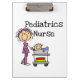 Uma grande prancheta para as enfermeiras pediatras que amam figuras, características uma figura fêmea enfermeira da vara com um bebê e texto da vara que lê a enfermeira da pediatria!