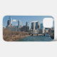 Esta é a bela linha do horizonte da cidade de Filadélfia, tirada de uma ponte que atravessa o rio Schuylkill. A arquitetura dos arranha-céus e edifícios de Filadélfia estão expostos nesta foto. Center City, a área centro de Filadélfia, é o foco desta fotografia. As nuvens puffy penduram-se no céu de inverno.