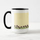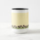 Uma fileira de pansies roxos e de verde sae em um fundo amarelo macio.