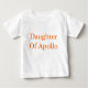 Um topo de bebê com "Filha de Apolo" em texto laranja. Apolo era o antigo deus grego do sol, música e profecia. Como os outros deuses, ele era conhecido por ter muitas relações com mulheres mortais e imortais.