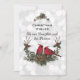 Um lindo cardeal vermelho sentado em uma tosse de pinheiro desejando a sua filha e seu parceiro um Feliz Natal