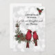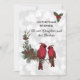 Um lindo cardeal vermelho sentado em uma tosse de pinheiro desejando a sua filha e seu parceiro um Feliz Natal
