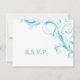 Este cartão de resposta é bonito com um delicado design de trabalho de rolagem em lindo Curaçao Azul em branco. Dá uma aparência brilhante, clara e nítida que é bonito, romântica, elegante e clássica, enquanto ainda é moderna com uma dica de safra, perfeita para o casamento oceânico/praia. Isto é parte de uma coleção de casamentos que tem ambas espirais brancas sobre um fundo turquesa/aqua, e turquesas espirais sobre um fundo branco, para que você possa se misturar e combinar com seu gosto. A cor de fundo é personalizável... basta clicar no botão "personalizá-la" para alterar a cor. Qual é a sua cor favorita do azul-turquesa?