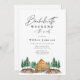 Este convite divertido com uma ilustração aquática de uma cena de acampamento ao ar livre com uma cabana. O começo perfeito para um fim de semana de despedida ou festa memorável! Personalize com suas informações para que a noiva seja.