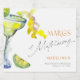 O rótulo da garrafa de licor da despedida de solteira apresenta um vibrante copo de margarita em aquarela e uma fatia de limão à esquerda, capturando perfeitamente o tema "Margs & Matrimony". O design adota um estilo minimalista, com sotaques coloridos que equilibram diversão e elegância, refletindo o tom comemorativo do evento.