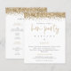 Dourado orçamento Fim de Semana do Glitter Hen Party Convidam. Um alternativo de 4,5 pol x 5,6 pol com preço inferior. Disponível em um STOCK DE CARTÃO SEMI-GLOSS 110 lb, que é a opção padrão (mais espesso para convites), OU um STOCK de PAPEL THINNER FINISH 80 lb FINISH (ideal para gabinetes). Os envelopes são um extra opcional e são ligeiramente maiores que o tamanho da placa. O cabeçalho principal do Hen Party está em uma tipografia de script definida e o resto do texto que você pode personalizar facilmente, assim como seus detalhes itinerários no contrário.