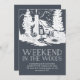 Escapar à floresta para um final de semana divertido? Convide os laços da noiva com estes convites de chic rústicos em cinzas azuis de marinho enfumaçado e branco. Design apresenta uma ilustração rustica de cabana e floresta com "fim de semana na floresta" em letras brancas. Personalize com seu tipo de evento e detalhes para tornar este convite seu — use para uma festa de solteira, festa de galinha, fim de semana das meninas e muito mais!