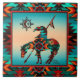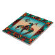 Aproxime sua casa com este único "Um de um tipo" final do Azulejo de Trilhos Cerâmicos! Ele apresenta um fim nativo americano da trilha índia, cavalo e sol em um fundo de turquesa e sol laranja... cercado por uma borda sudoeste em turquesa, laranja e preto!