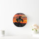 Fim da silhueta de trilha no relógio da parede do pôr do sol