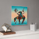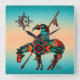 Este é um único "Um dos tipos" do fim indiano do relógio da parede! Ele apresenta um índio nativo americano em um cavalo e sol em um fundo de turquesa e sunset laranja! Design De Arte Original Pelo Artista Kerry Miller.