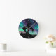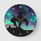 Fim da silhueta de trilha com o céu noturno e o relógio da parede do norte Aurora