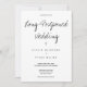 Um convite de casamento para o seu casamento adiado. Você enviou salvar as datas, depois alterar as datas e possivelmente alterar as datas novamente. Mas, agora está finalmente aqui. Conheça o que você e seus convidados já sabem...há muito que vem aí. Este convite é feito a preto e branco. Basta adicionar suas informações, adicionar este convite ao seu carrinho e aproveitar o casamento que você estava esperando.