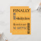 Finalmente casados, anúncio de casamento engraçado ou convite de festa com frases engraçadas: finalmente, já era hora, a espera acabou, tão esperado, etc. Seu texto personalizado do outro lado. Se as pessoas estiverem esperando há uma eternidade para você se casar e vocês fugiram ou tiveram um casamento em outro destino ou uma cerimônia no tribunal e estão fazendo uma festa de celebração de casamento casual mais tarde, personalize esse convite divertido e não tradicional para o seu evento pós-casamento. Ou edite o texto para ser um anúncio da sua união tão esperada.