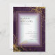 Um fundo de aquarela em tons de roxo de ameixa é tocado por um abstrato de linhas de ouro finas e efeitos de iluminação reluzentes para criar as peças desta bela suíte de casamento. O cartão "Convite" do casamento mostrado aqui também apresenta texto fora do centro e um belo quadro de gradação para guardar todo o seu texto. Adicione facilmente seus próprios nomes, data do casamento e detalhes do evento usando o modelo fornecido. Procure ID867 para ver outras peças e opções de cores para este conjunto.