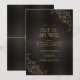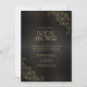 Molduras e ornamentos deliciosos, texturizados em folha de ouro falso, decoram as peças desta elegante suíte de casamento. Uma fonte serif romântica dá a esses convites de chá de panela uma aparência clássica, mas moderna. Um fundo texturizado em carvão quente adiciona o toque final. Procure ID871 para ver a coleção completa de casamento e outras opções de cores para este design.