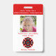 Crachá de bombeiros pretendidos para crianças. Perfeito para o papel e a fantasia de Halloween. Adicione a foto da criança e personalize as informações.