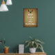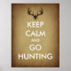 Fique calmo e vá caçar com Deer Antler Silhouette no topo e um fundo marrom rústico aflita.