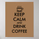 Beige Brown, mantenha calma poster com modelo com xícara de café de arte em pixel. Condecoração de parede para donos de café e compro de café. Personalizável com o texto e a cor de fundo. Mantenha calma e carregar na paródia do design / paródia. Fique calmo e beba chá. Fique calmo e me ame. Fique calmo e compre.