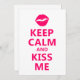 Uma paródia rosa brilhante "Mantenha Calma e Me Beije" do clássico poster.