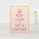 Um cartão de aniversário bonito, dizendo "fique calmo e coma um cupcake" para o amante dos doces na sua vida. Design © 2014 Julia Bryant.